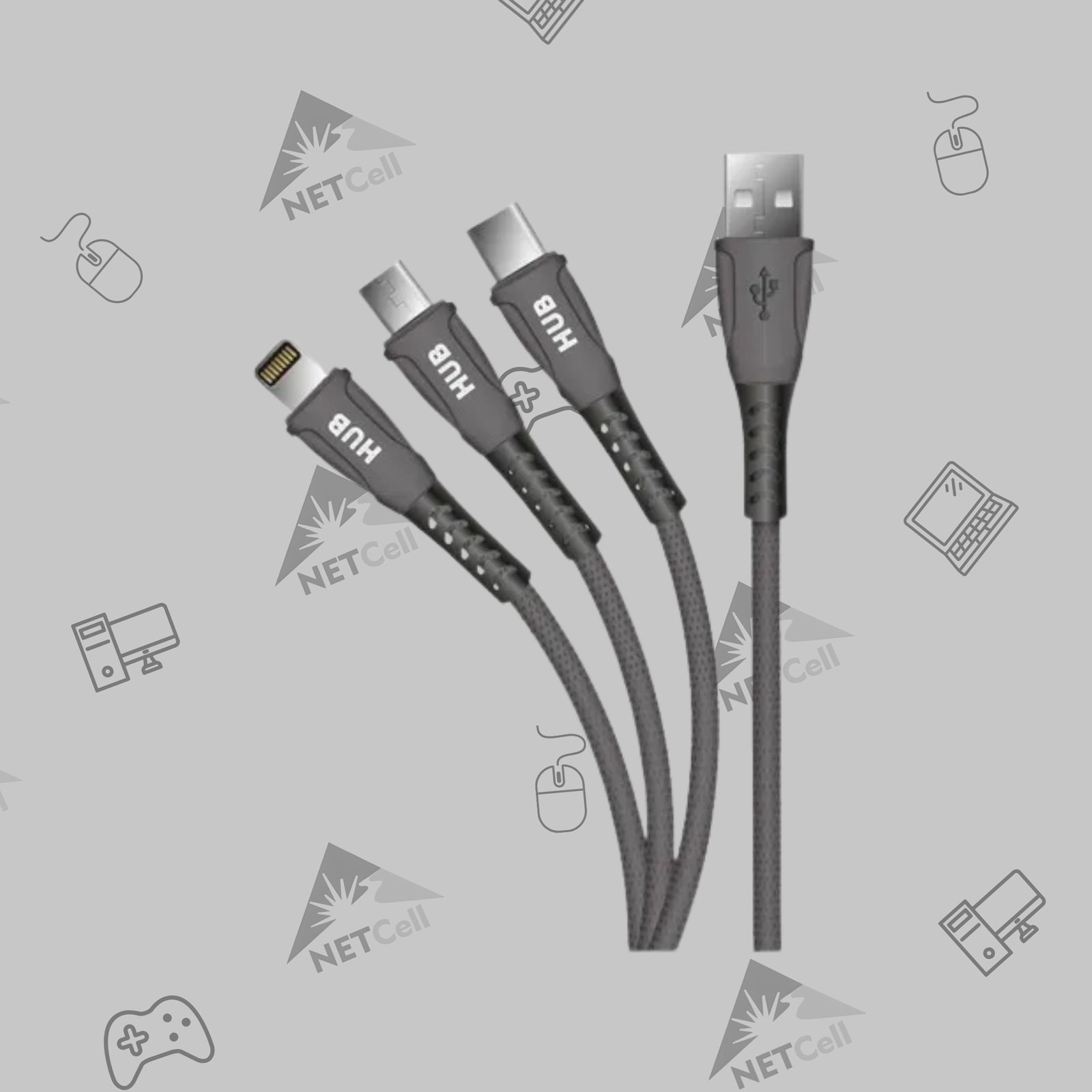 El Foxbox Hub 3 en 1 es un cable versátil que combina tres tipos de conectores en un solo accesorio, ideal para cargar y sincronizar distintos dispositivos de manera rápida y práctica.