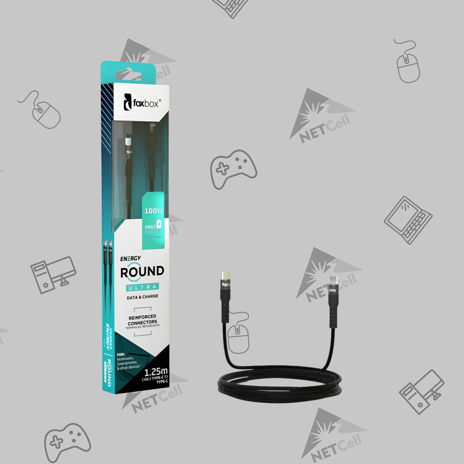 El Foxbox Prism Pro es un cable USB Tipo-C a Tipo-C diseñado para quienes buscan carga rápida y transferencia de datos de alto rendimiento. Su diseño reforzado y su longitud de 1.25 metros lo hacen práctico y confiable para el uso diario.