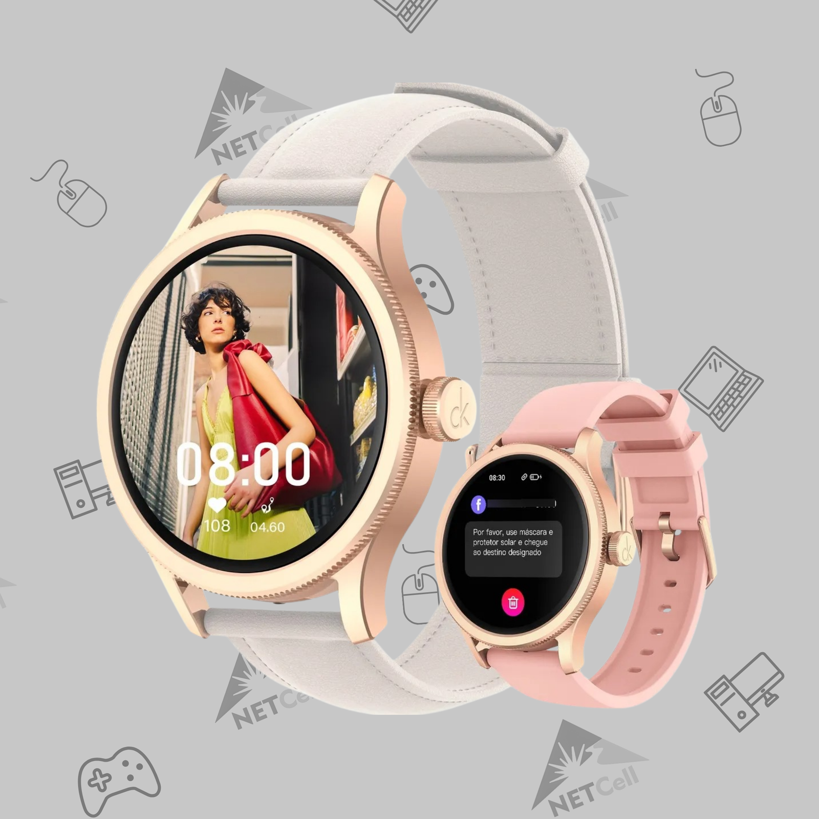 - Color: Dorado, malla deportiva rosa y de cuero blanca