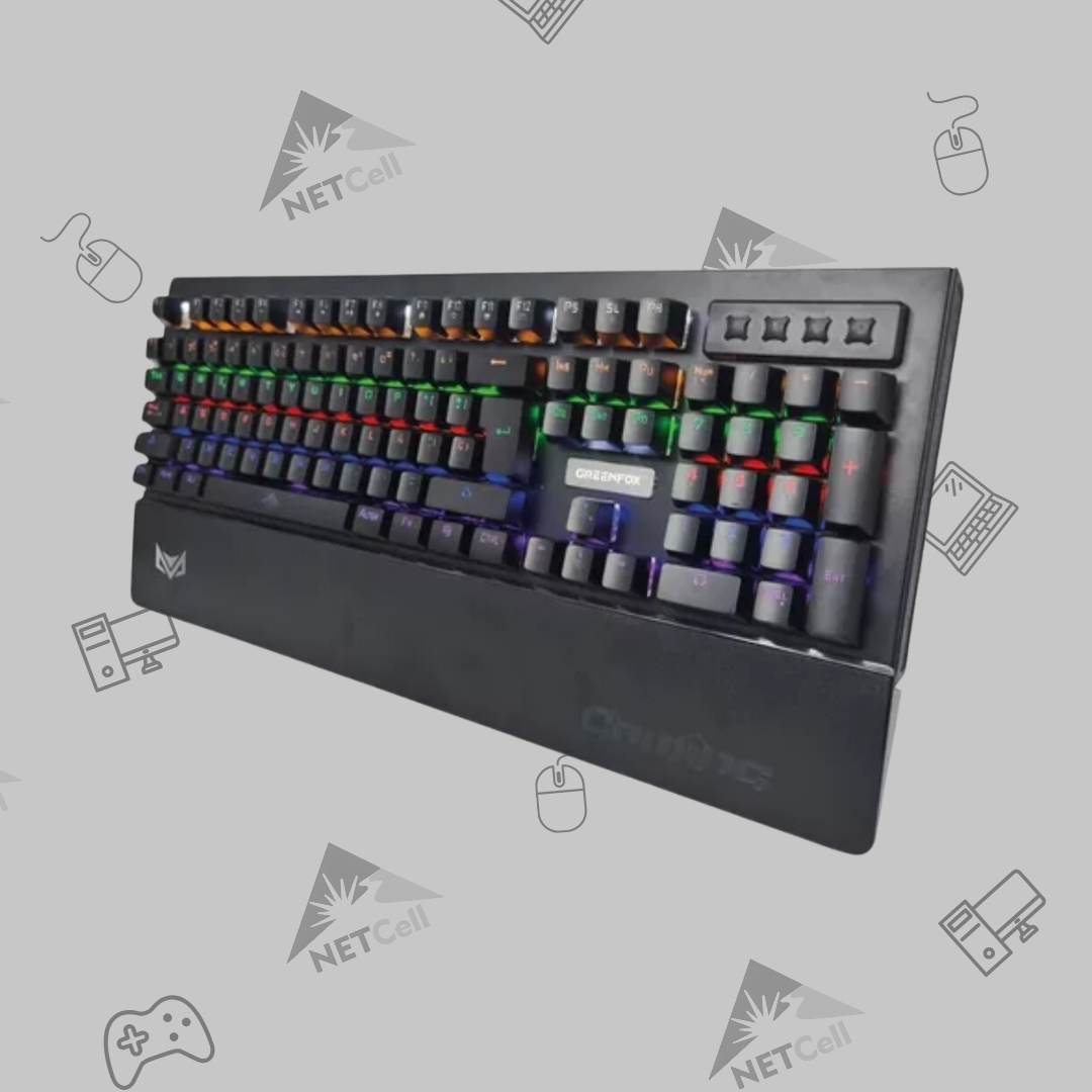 Teclado mecánico Greenfox GFK1300 con retroiluminación LED, teclas duraderas y precisas, multimedia integrada y diseño ergonómico para gamers exigentes.